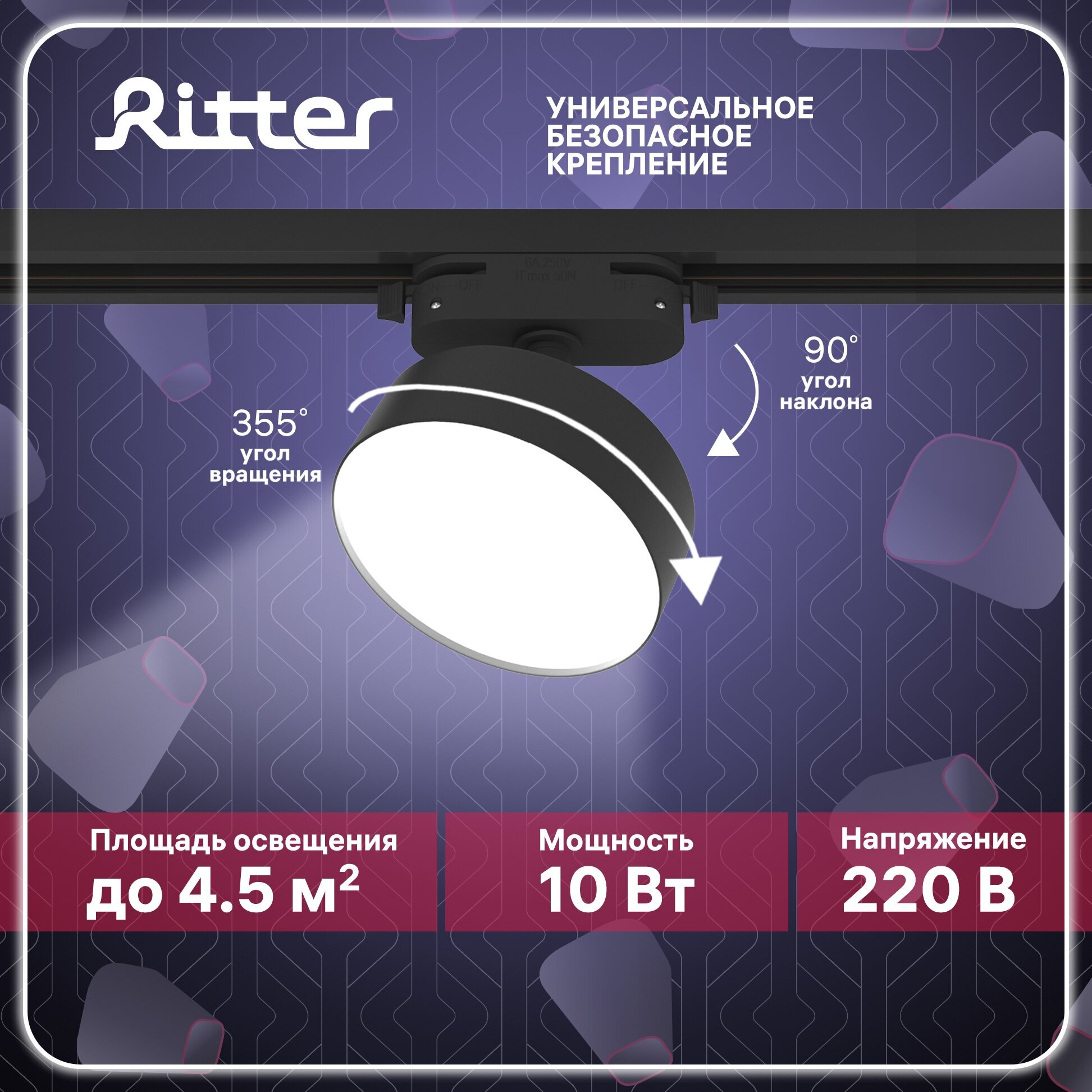Трековый светильник спот поворотный светодиодный Ritter Artline 75х30мм 10Вт до 4.5м² 4000К металл чёрный Artline 59726 5