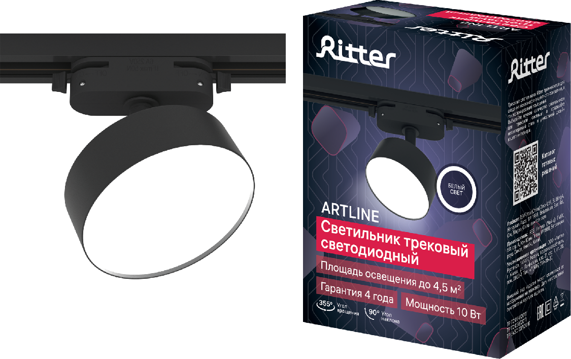 Трековый светильник поставляется в брендовой упаковке Ritter в комплекте с паспортом изделия.