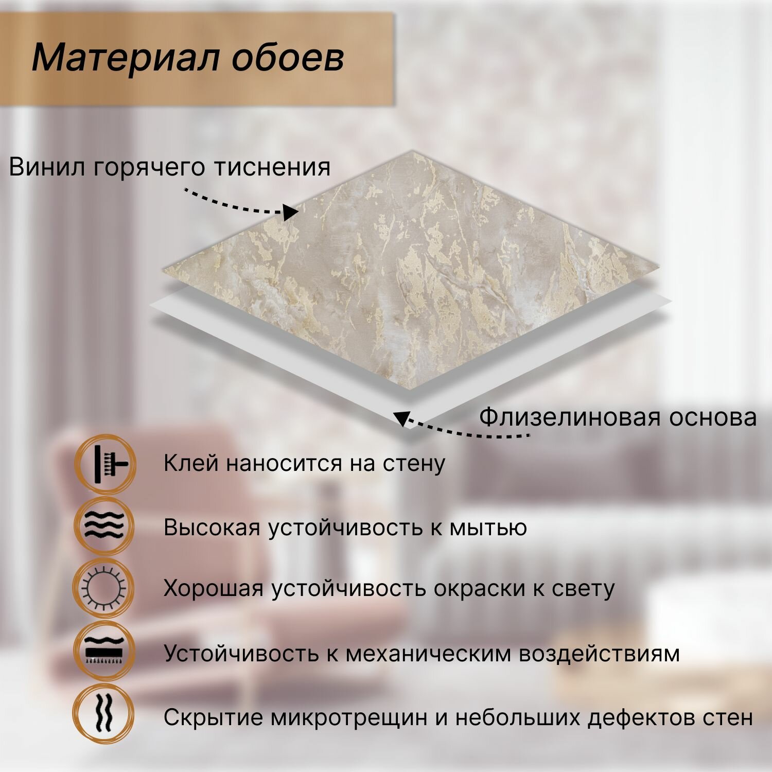 | Материал покрытия обоев | Винил горячего тиснения |