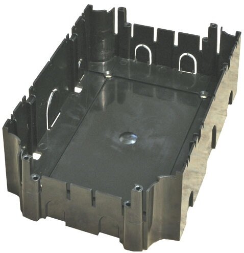 **Коробка для люка** — встраиваемый элемент для монтажа кабельных систем, устанавливающийся в бетонный пол. Модель изготовлена из прочного, негорючего пластика, надежно защищает провода от коррозии, попадания грязи и пыли внутрь.