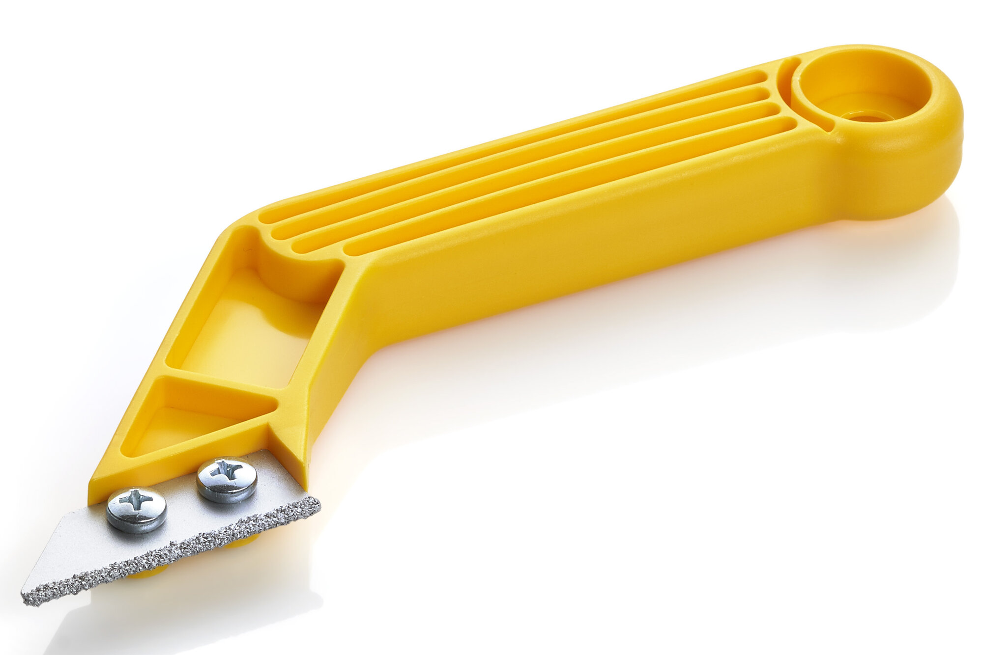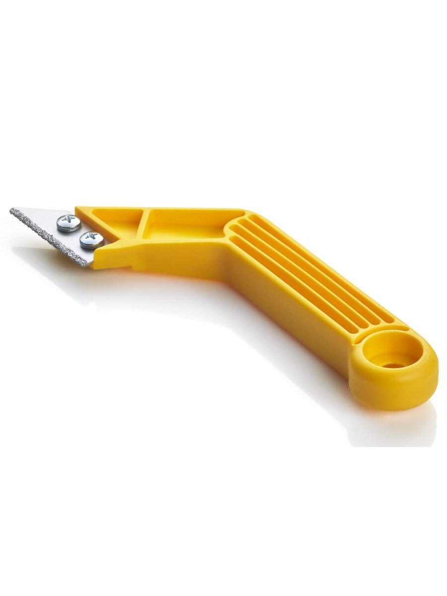 **Нож для очистки межплиточных швов Makers 40 мм** — удобное и практичное приспособление в виде скребка, дополненного пластиковой ручкой, которая легко ложится в руку и не соскальзывает в процессе работы. Прочное лезвие из инструментальной стали с режущей поверхностью надежно зафиксировано на корпусе изделия. С его помощью можно эффективно расшить старые кафельные швы и удалить затирку, которую требуется заменить. Ручка изготовлена из полипропилена — на ее конце предусмотрено небольшое отверстие для подвешивания инструмента.