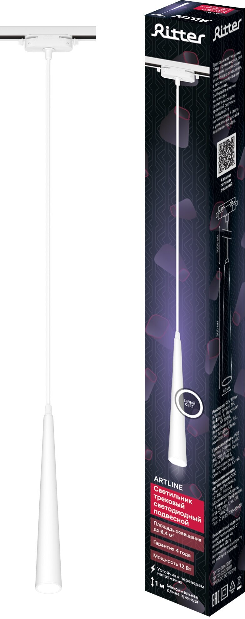 Трековый светильник поставляется в брендовой упаковке Ritter в комплекте с паспортом изделия.