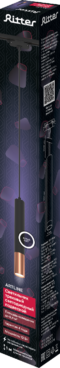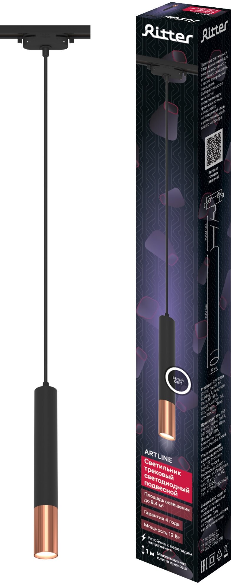 Трековый светильник поставляется в брендовой упаковке Ritter в комплекте с паспортом изделия.
