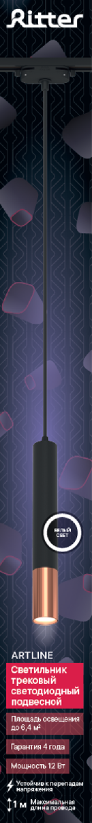 **Трековый светильник Ritter Artline** — предназначен для освещения жилых комнат и помещений общего пользования.