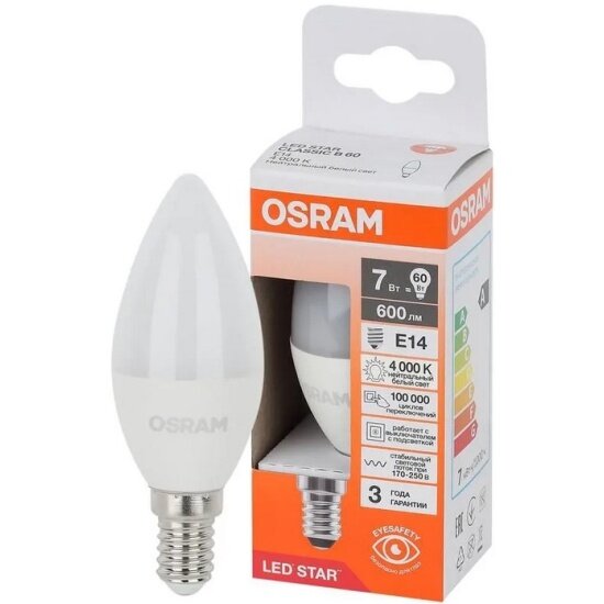 Модель: Лам LED OSRAM свеча 7Вт,600Лм,E14,4000
