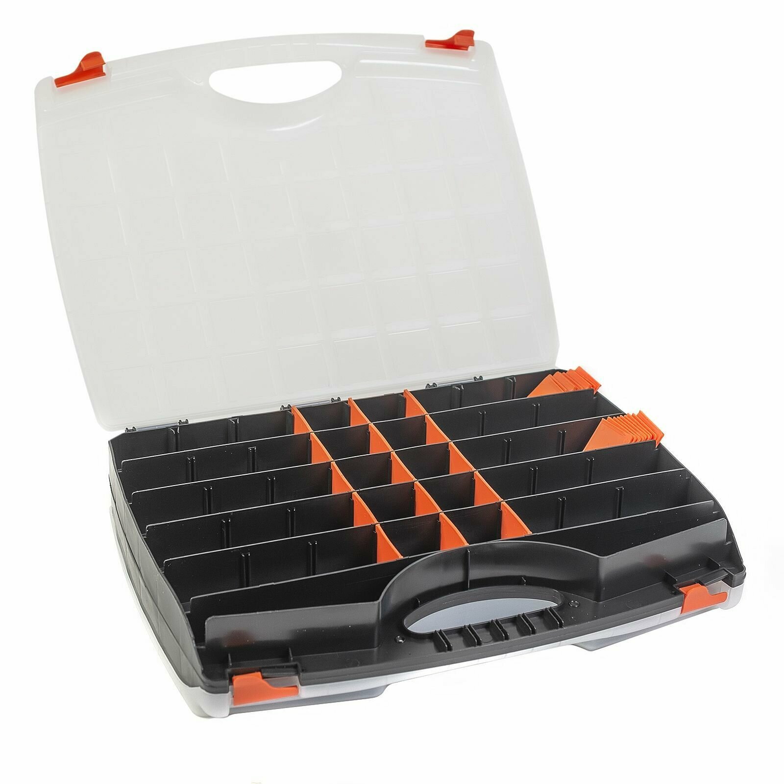**Органайзер для мелочей двухсторонний** позволит компактно хранить разные мелочи, необходимые в доме, на работе. Кейс отличается вместительностью, оснащен отсеками разного размера. Удобен для рыбаков, охотников, мастеров. Конструкция сделана таким образом, что при переносе органайзера содержимое ячеек не будет пересыпаться и смешиваться.