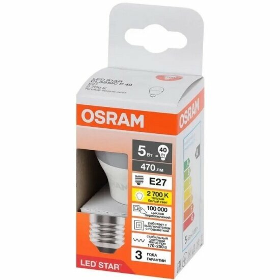 Модель: Лам LED OSRAM шар 5Вт,470Лм,E27,2700