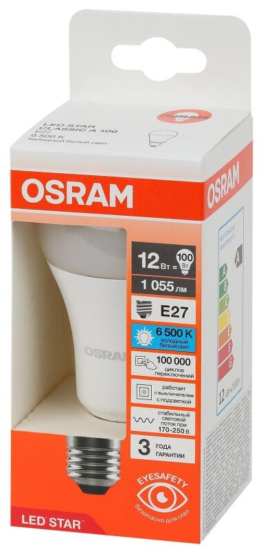 Модель: Лам LED OSRAM груша 12Вт,1055Лм,E27,6500