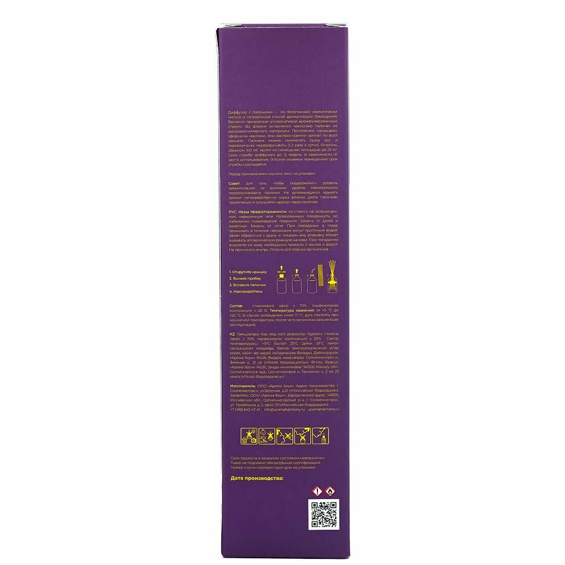 Откройте упаковку, достаньте флакон и палочки. Открутите крышку, вставьте палочки во флакон. Интенсивность аромата можно регулировать количеством палочек. Чем их больше, тем интенсивнее аромат. В более влажных помещениях и на сквозняках срок службы диффузора сокращается.
