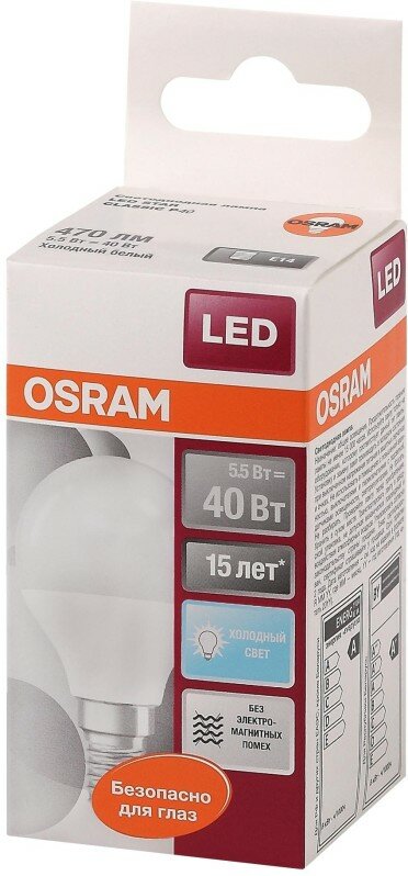 Модель: Лам LED OSRAM шар 5Вт,470Лм,E14,4000