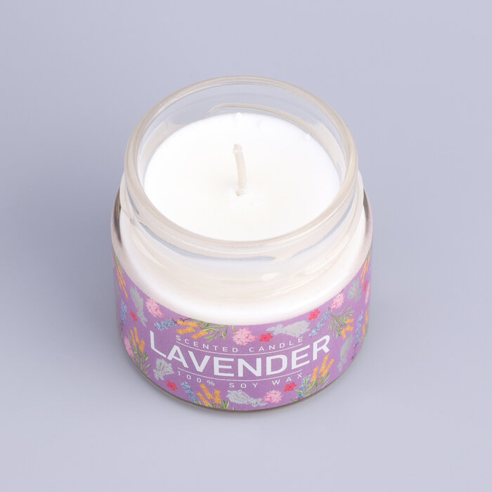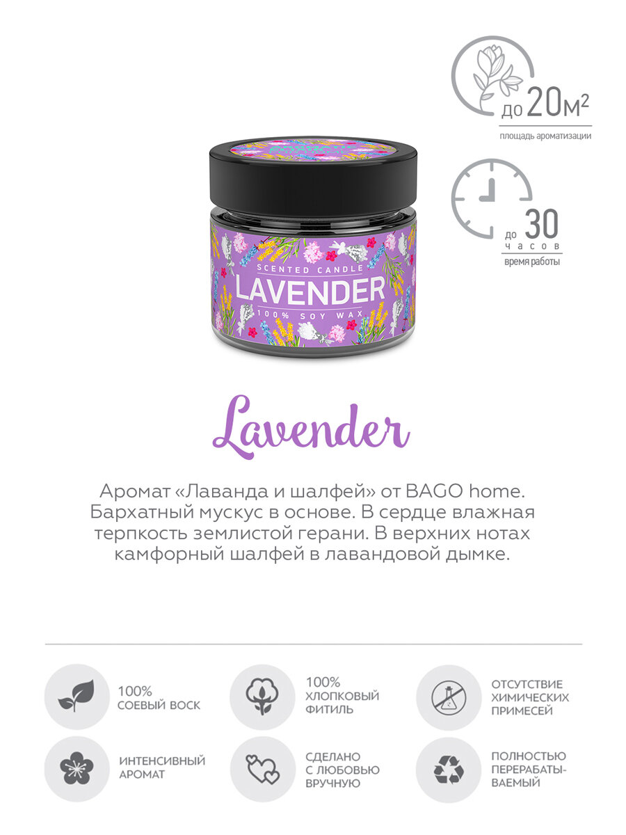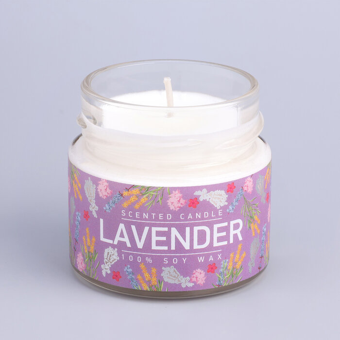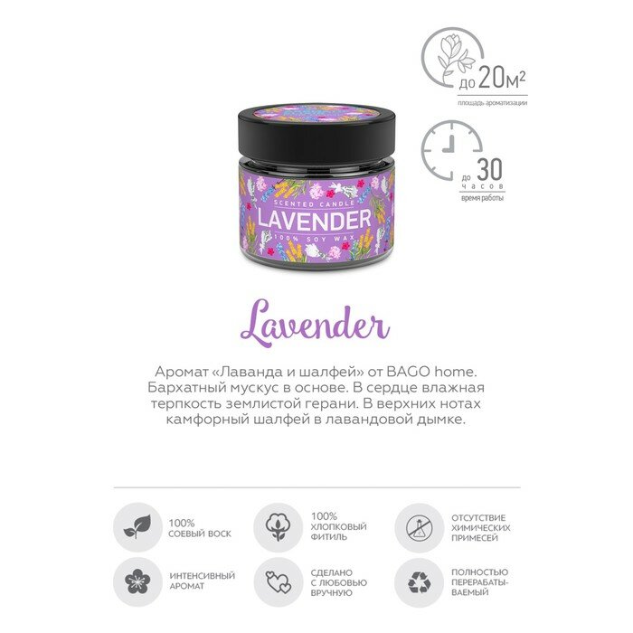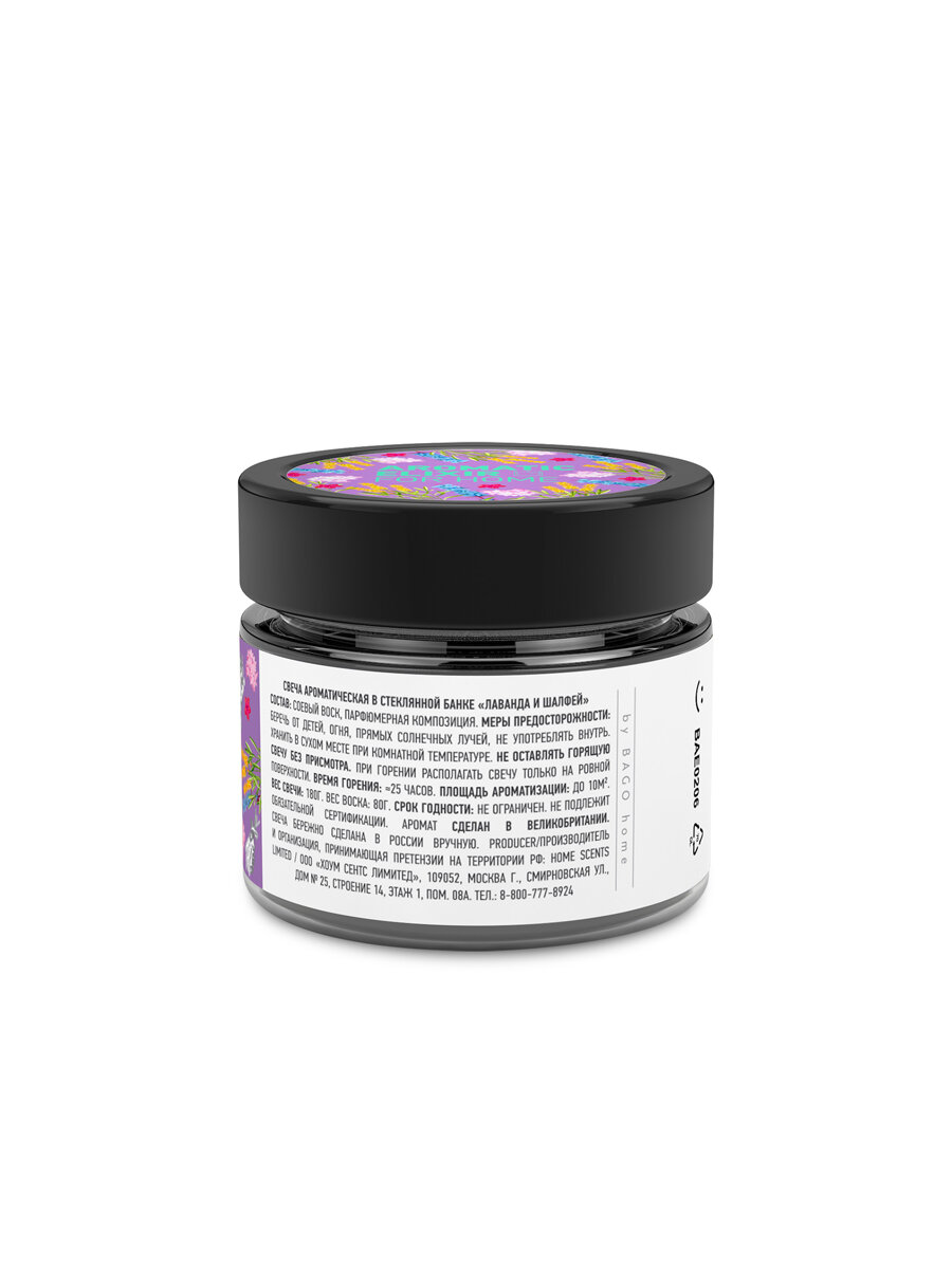 Свеча ароматизированная в стеклянной банке Лаванда и шалфей фиолетовая 5.8 см Bago home BAE0206