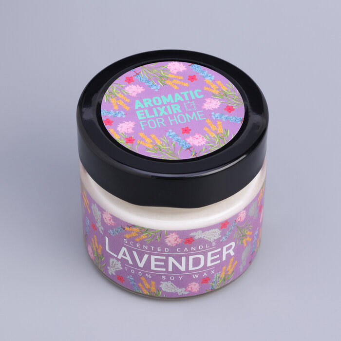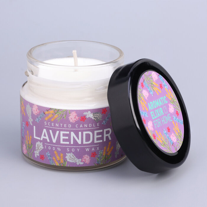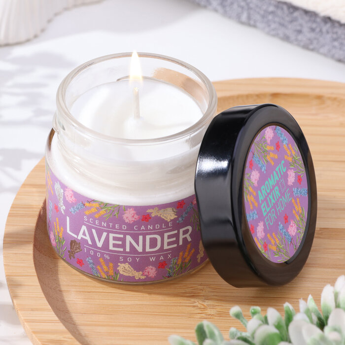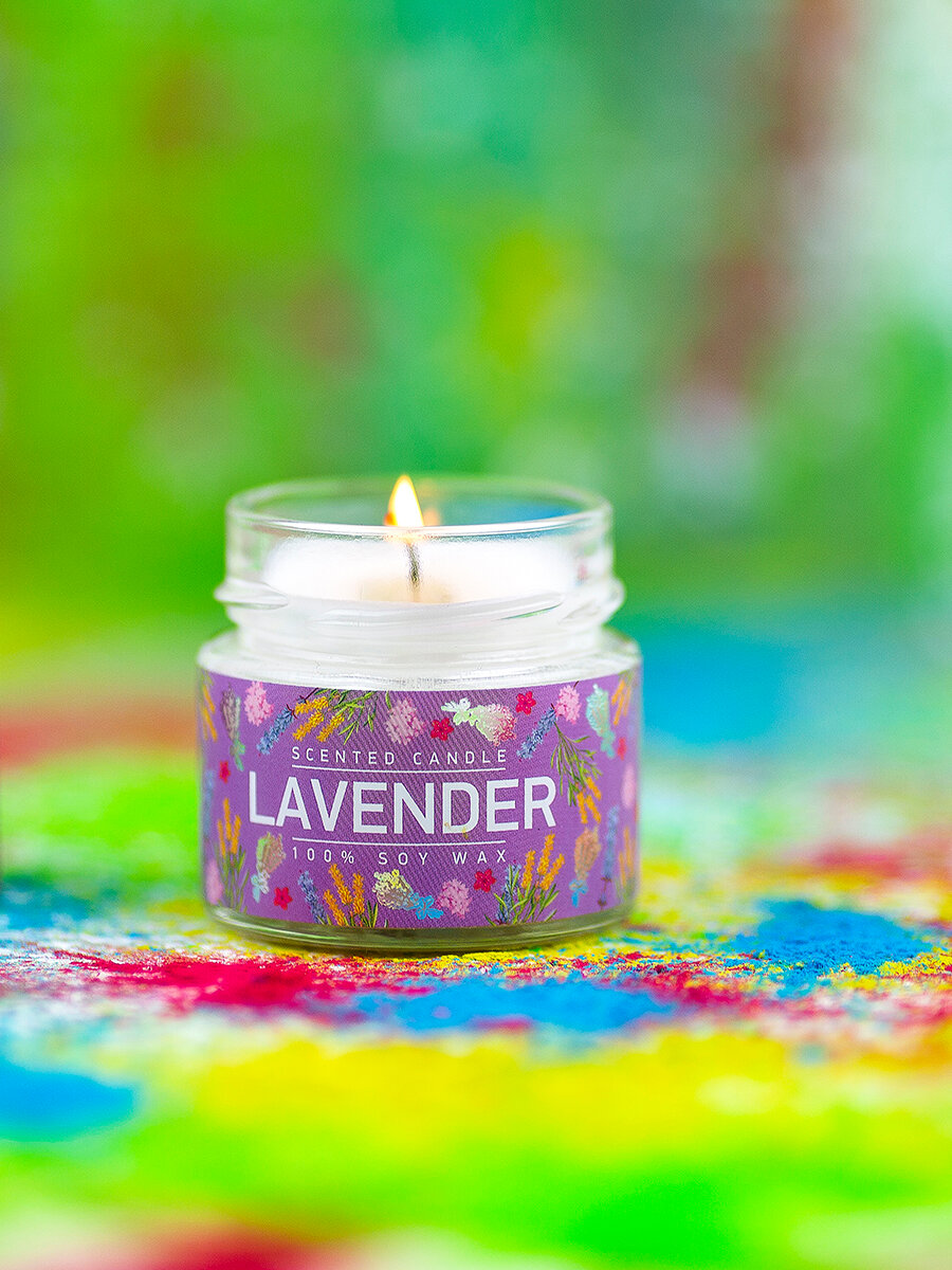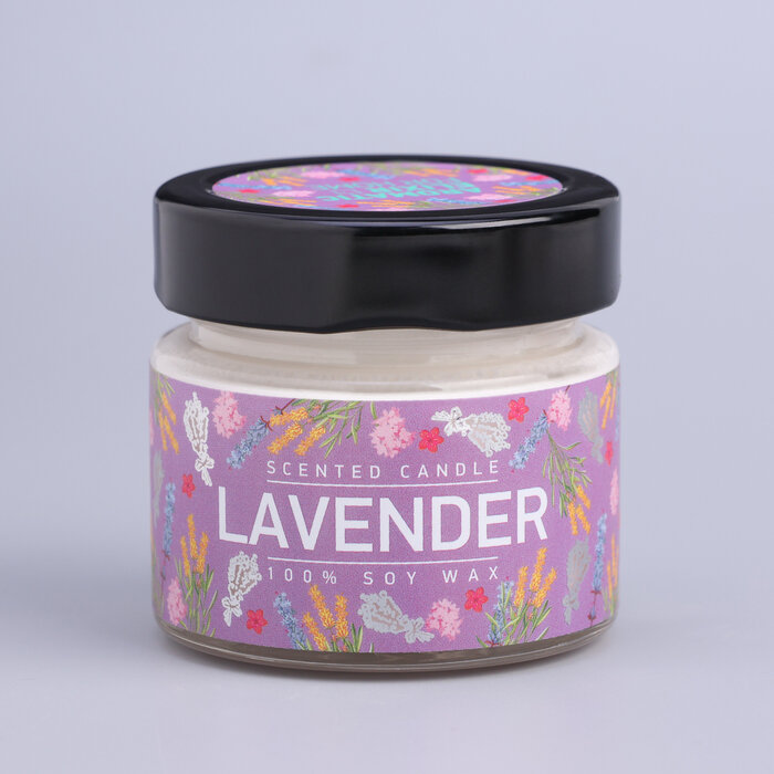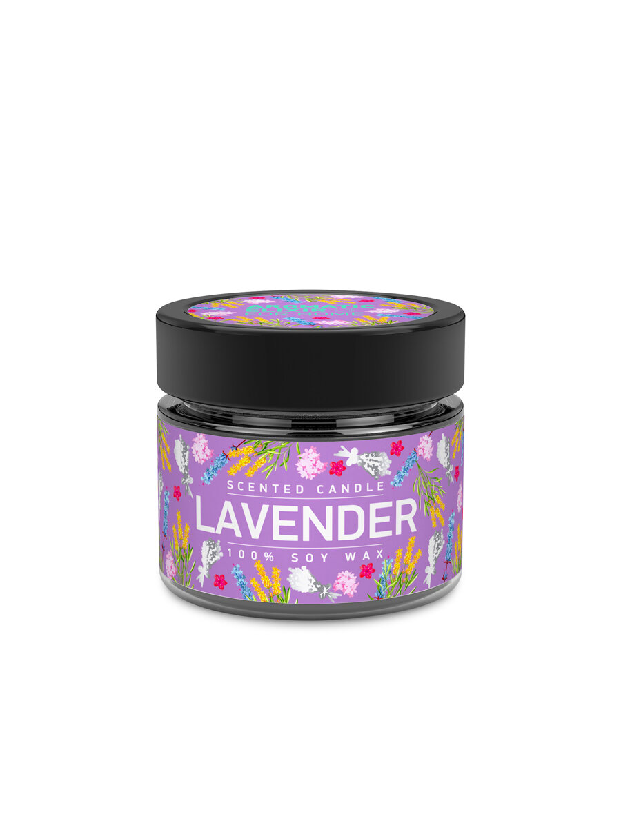 Свеча ароматизированная в стеклянной банке Лаванда и шалфей фиолетовая 5.8 см Bago home BAE0206