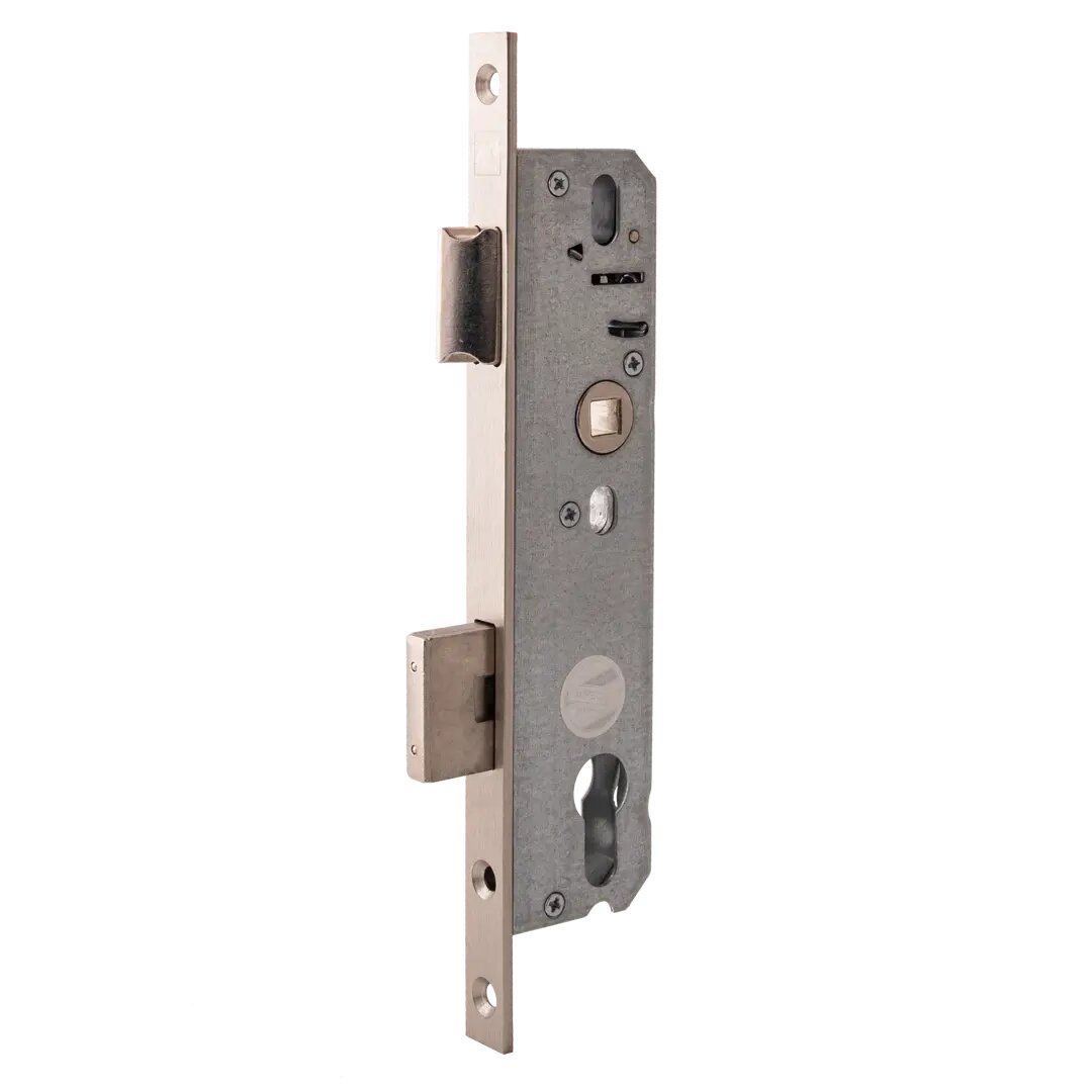Врезные замки для дверей из ПВХ профиля. Ассортимент представлен моделями с роликовым фиксатором и моделями под ручку с фалевой защелкой. Замки не комплектуются ответной планкой.