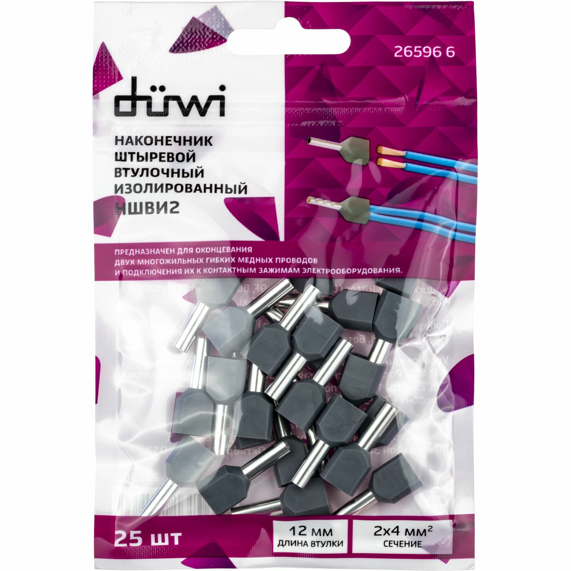 Наконечник-гильза Duwi НШВИ 2 4-12 мм цвет серебристый 25 шт. None
