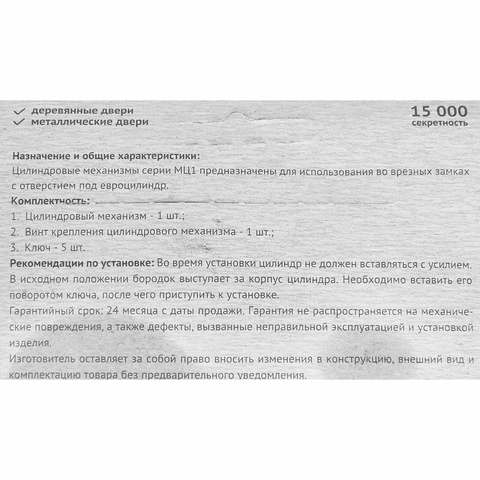| Тип продукта | Цилиндр для замка |