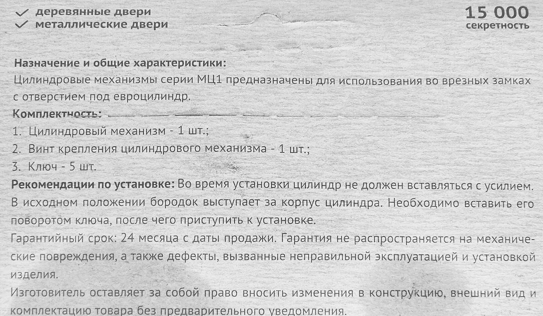 | Запирающий механизм | цилиндровый (штифтовый) |
