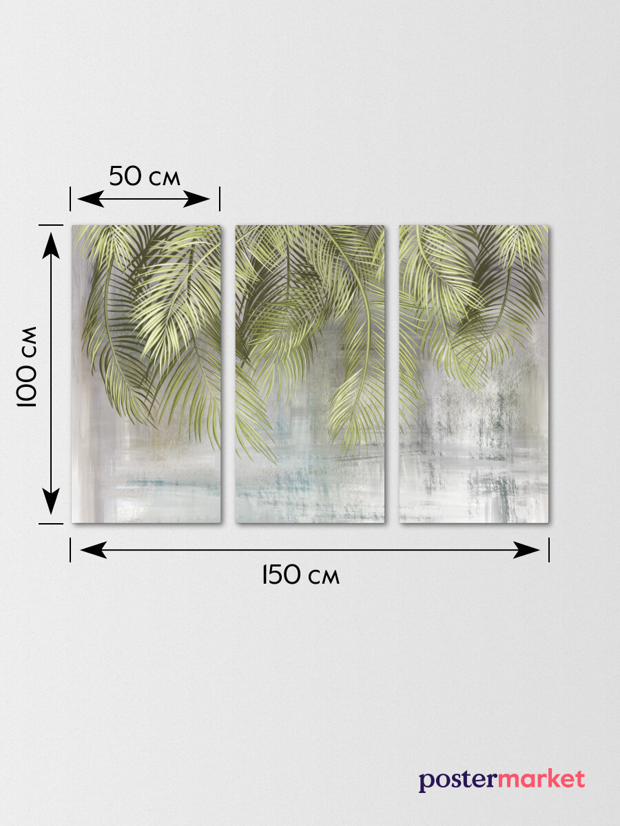 Картина на МДФ Листья лофт 50x100 см 3 шт POSTERMARKET CM3-59 Модульные картины на холсте