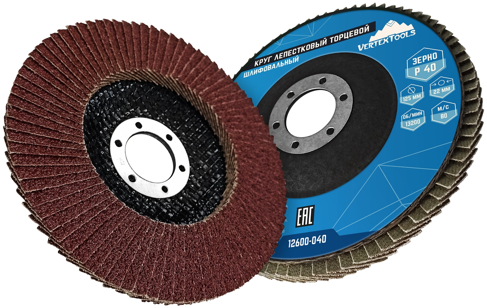 Круг лепестковый для УШМ Vertextools Р80 125 мм КЛТ 125х22,2 мм; P80