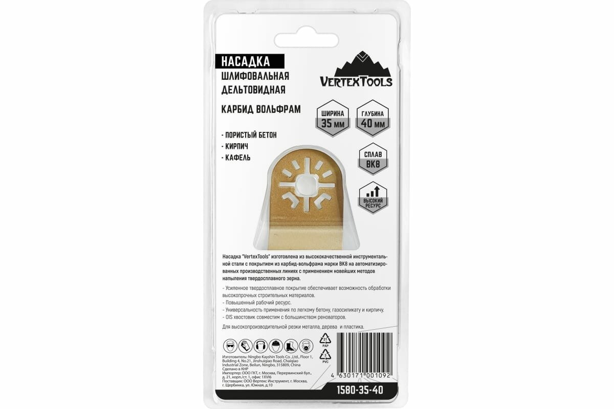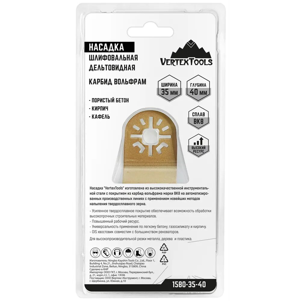 Насадка шлифовальная дельтовидная по бетону Vertextools 35x40 мм Насадка дельтовидная карбид вольфрам