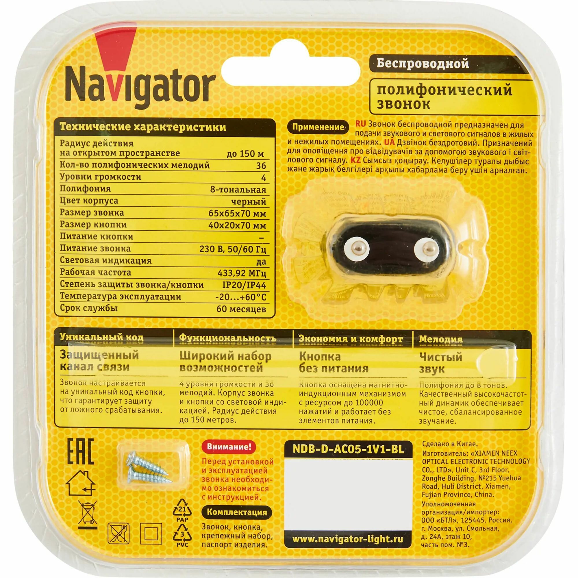 Дверной звонок беспроводной Navigator 80 508 36 мелодий цвет черный NDB-D-AC05