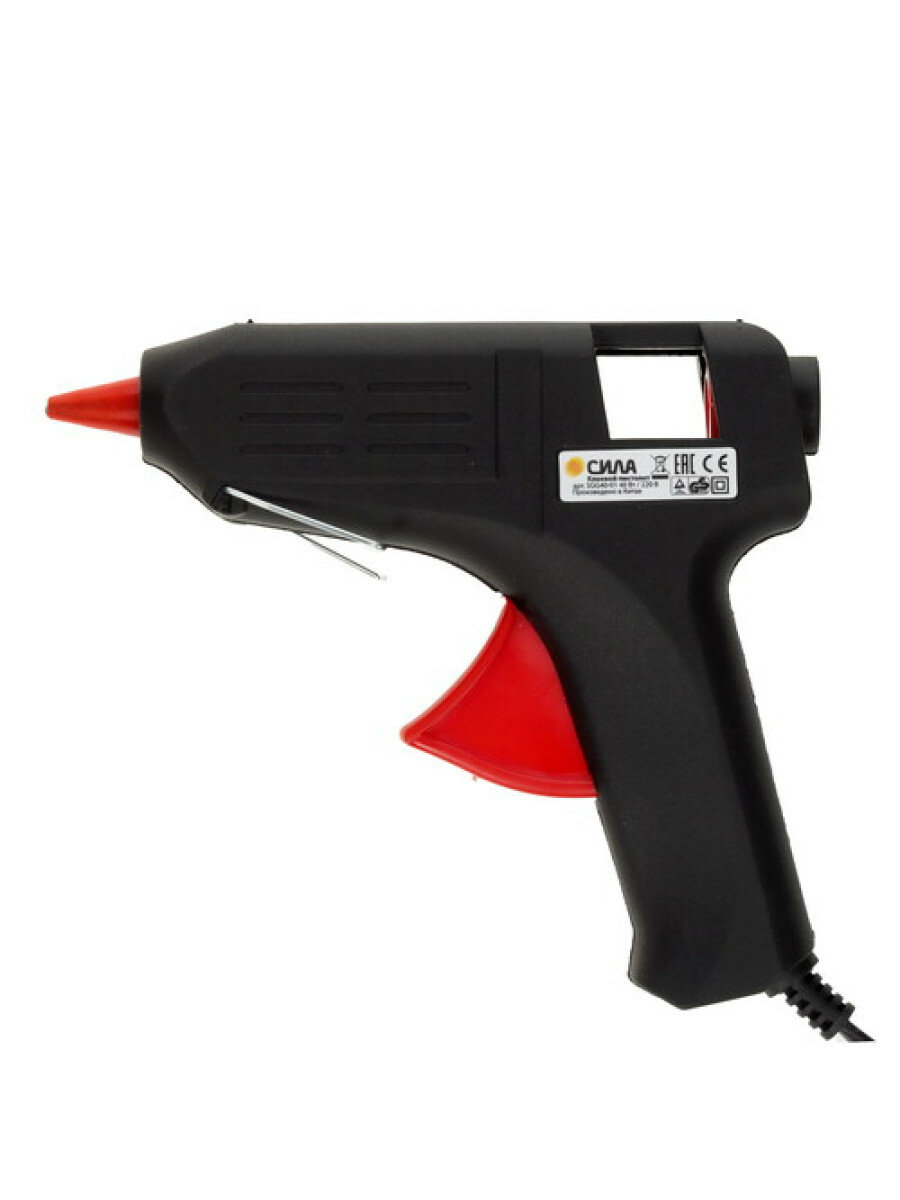 **Пистолет клеевой Сила** предназначен для прочной фиксации различных материалов: дерева, керамики, пластика, картона и т. д. Фиксация происходит посредством расплавленного клеевого стержня с последующим застыванием состава. Заправляется клеевым стержнем. Корпус пистолета изготовлен из прочного пластика, оснащен удобной скобой для надежной установки в нерабочем положении.