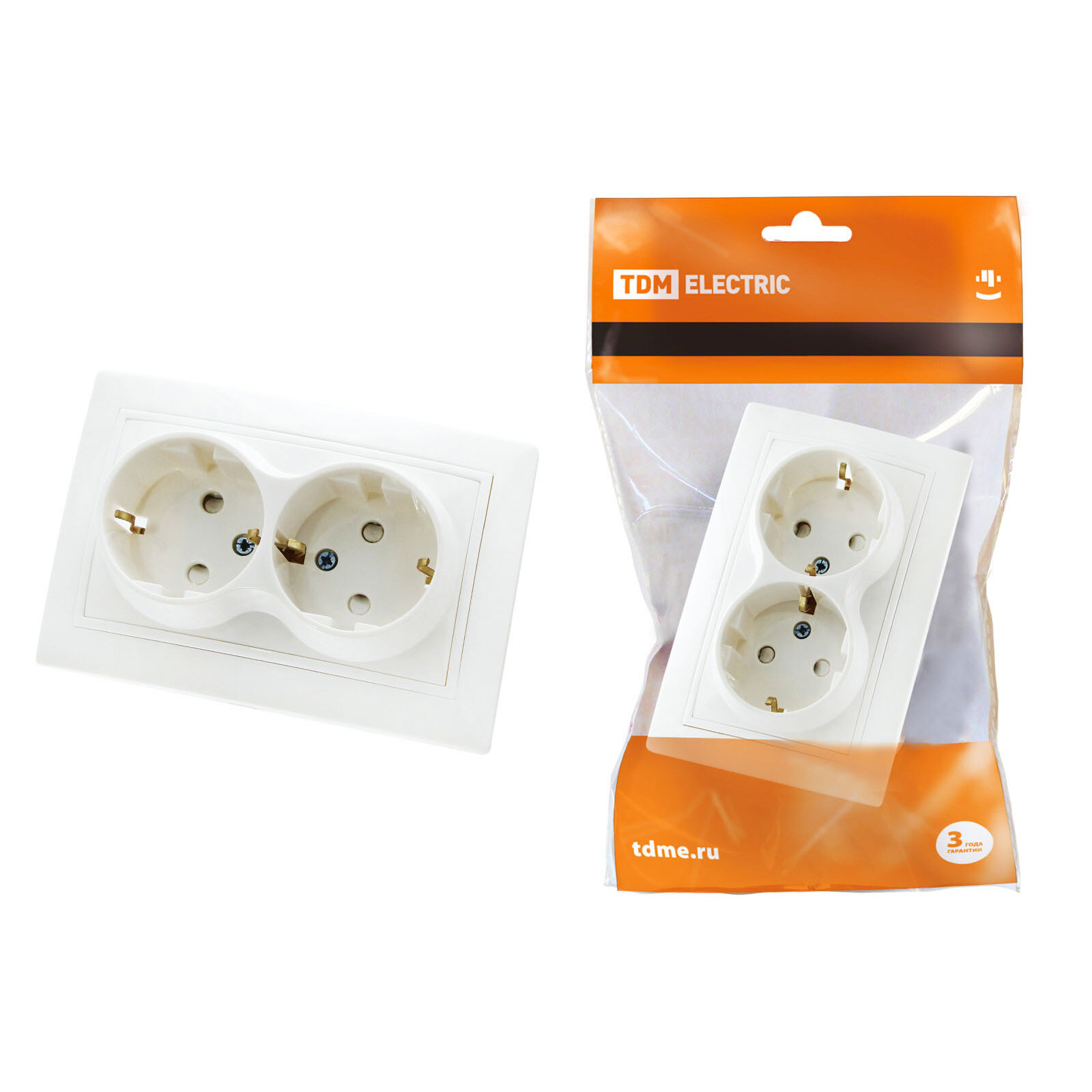 Розетка двойная встраиваемая Таймыр с заземлением со шторками цвет белый Без бренда Розетка двойная 2П+З с защ. шт. 16А