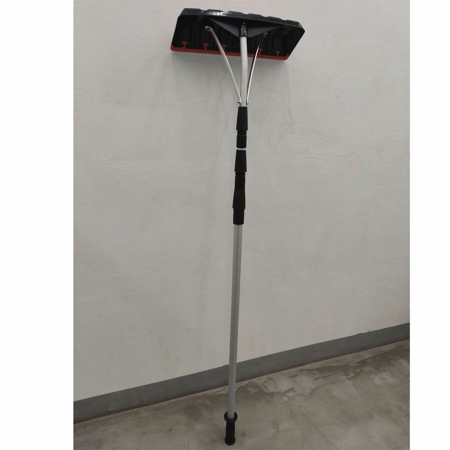 **Скребок ** общей длиной 480 см — аксессуар для быстрого и безопасного удаления свежевыпавшего снега и льда с крыш автомобилей, жилых, торговых и хозяйственных построек. Рабочая часть инструмента выполнена из морозостойкого силикона, который плотно прилегает к поверхностям, удаляя снег без повреждения покрытий. Телескопическая алюминиевая ручка позволяет достигать труднодоступных мест и одновременно обеспечивает компактное хранение.