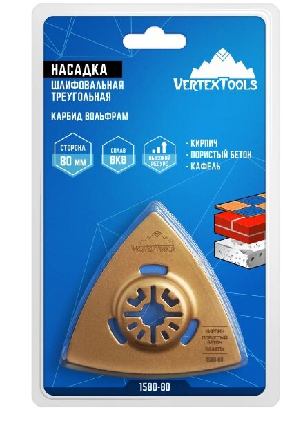 Насадка шлифовальная треугольная по бетону Vertextools 80 мм Насадка карбид вольфрам 80мм