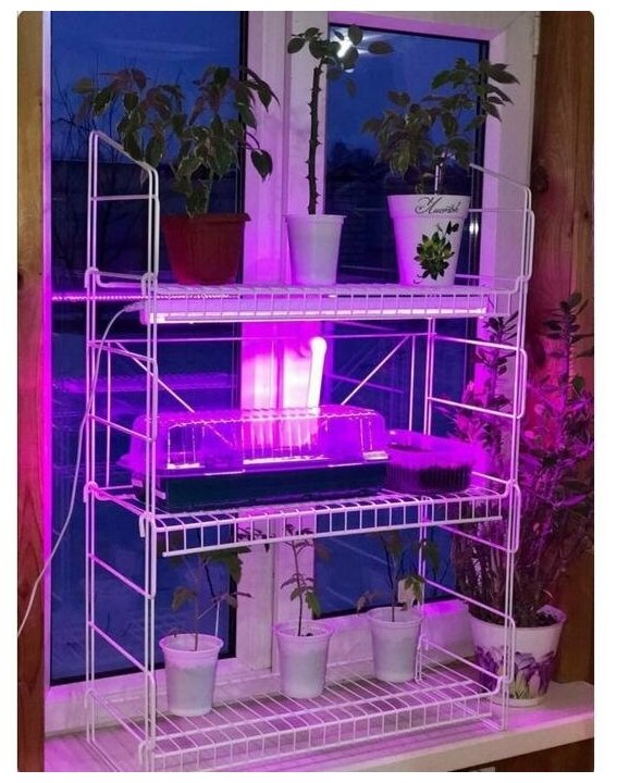 - Эстетика. Стеллаж для рассады «Найди» в белом цвете выглядит аккуратно, легко и не выделяется на фоне комнаты.