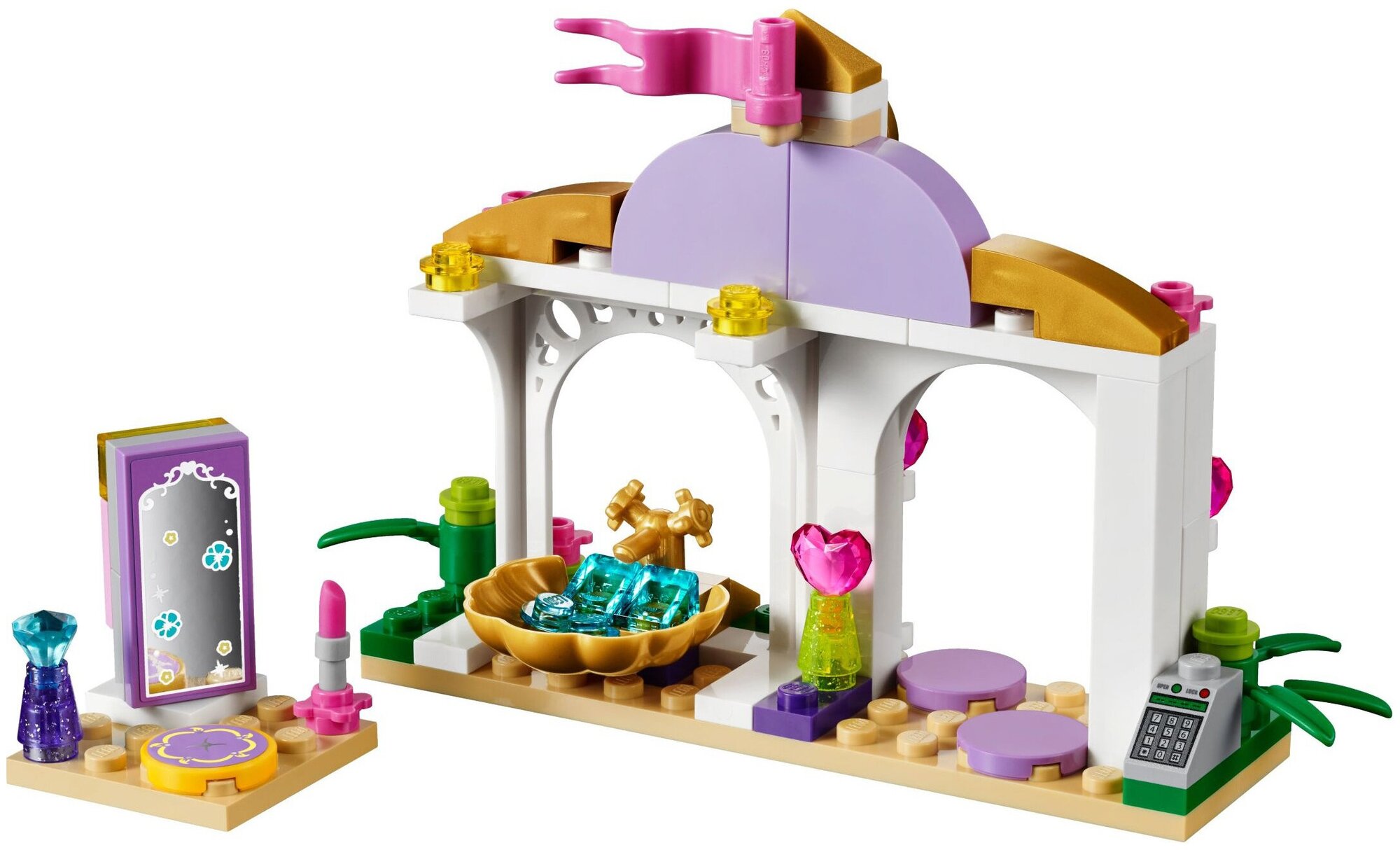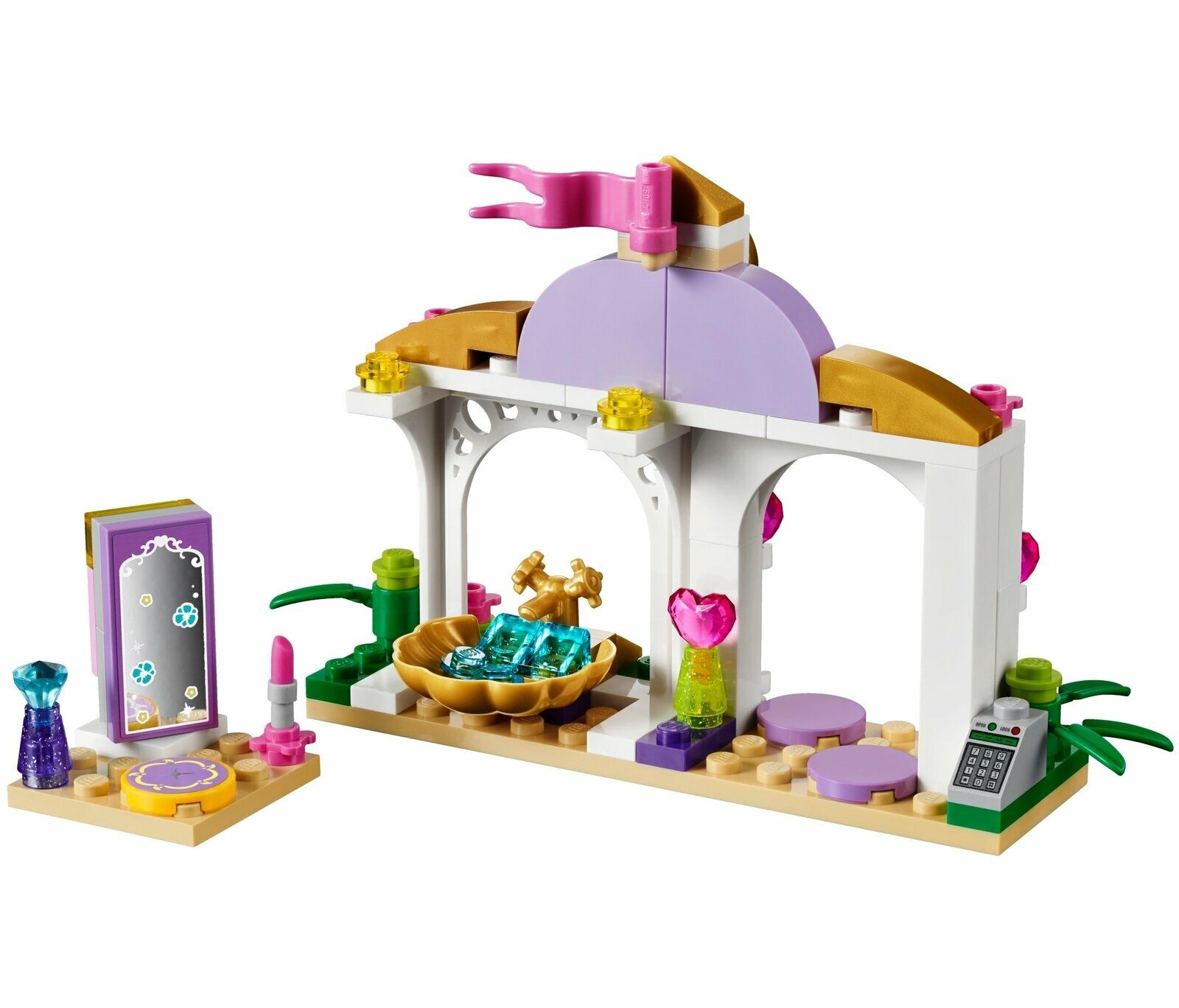 Игровой набор LEGO Disney Princess - отличный способ воссоздать самые яркие эпизоды из всеми любимых волшебных диснеевских мультфильмов. Очаровательный питомец Рапунцель по кличке Ромашка тщательно следит за своей внешностью и обожает оригинальные модные прически. Любящая хозяйка не упустила из виду необыкновенный талант собачки и открыла для нее настоящий салон красоты, в котором будут рады всем королевским питомцам. Небольшое одноэтажное здание вмещает в себя банное помещение с позолоченной ванной в форме открытой ракушки и множеством разнообразных средств для ухода, а также уютную комнату отдыха с удобными пуфиками и вкусными лакомствами. Отдельно стоящая парикмахерская зона оборудована всем необходимым для завершения работы с прическами и создания легкого макияжа. В комплекте имеются элементы для конструирования салона красоты и всевозможные игровые аксессуары. Набор совместим с другими конструкторами серии Disney Princess.