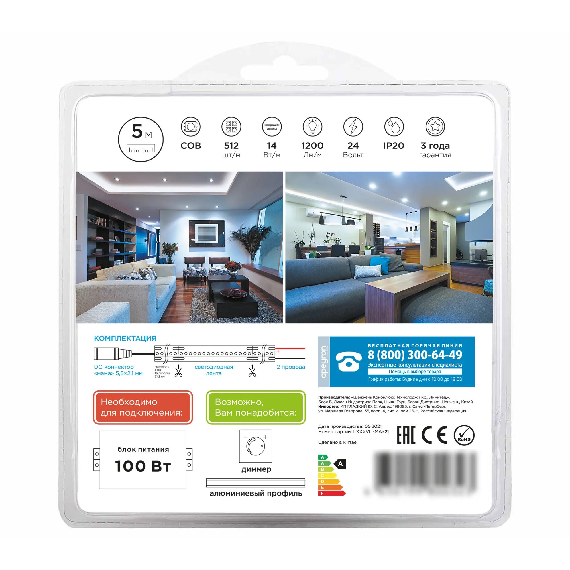Светодиодная лента Apeyron 14 Вт/м 24 В 10 мм IP20 5 м нейтральный белый свет 202ОО