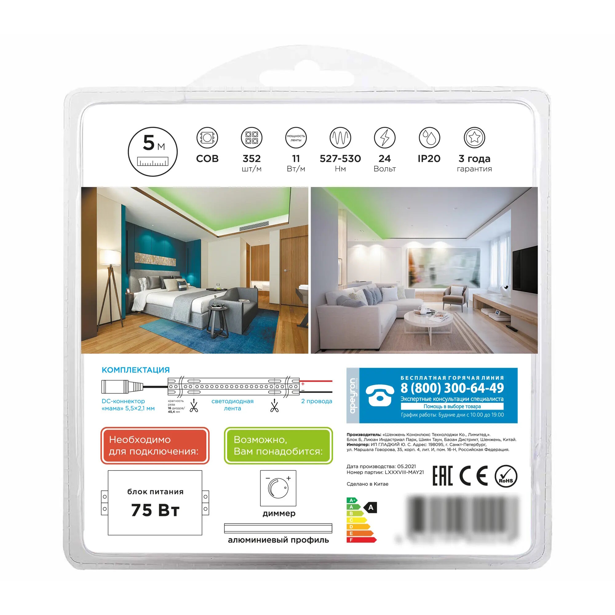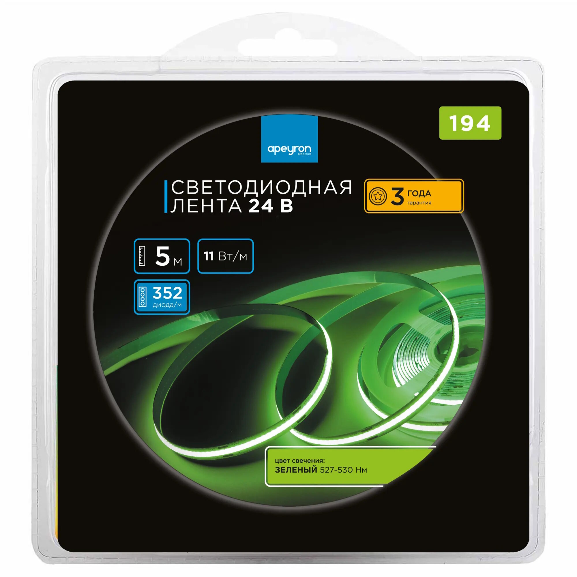 Светодиодная лента Apeyron 11 Вт/м 24 В 10 мм IP20 5 м зеленый свет 194ОО