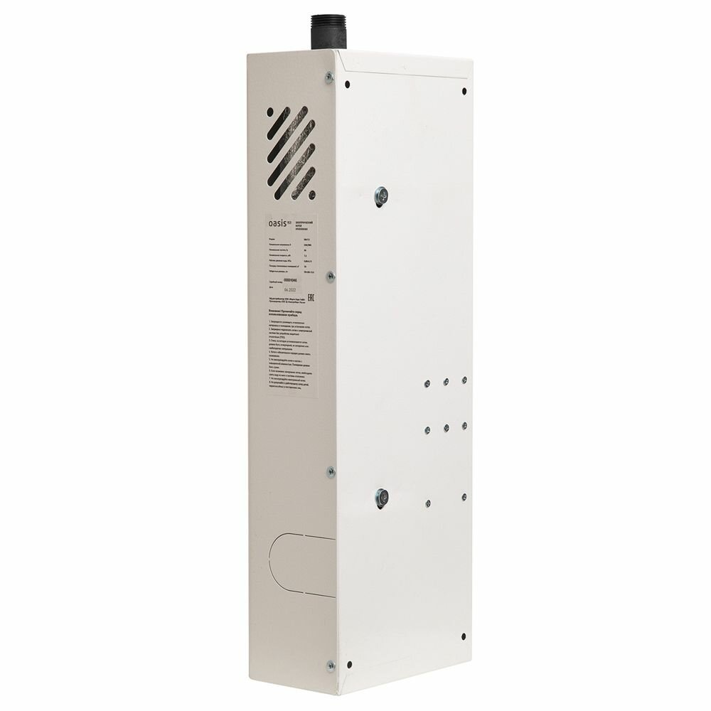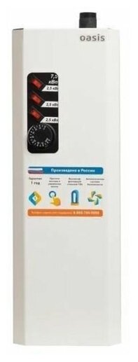 Электрический котел OASIS Eco kn-7.5 4640130929831 подходит для отопления магазинов, дач, частных домов, гаражей, складов, офисов, являясь мощным, экологичным и недорогим прибором. За счёт своих компактных размеров электрокотел Oasis Eco можно установить на кухне, в подвале, мансарде. Отличный выбор для установки в помещениях, не имеющих подключения к газовой системе и в дома, в которых отсутствует дымоход. Котлы Oasis Eco полностью адаптированы к условиям эксплуатации в России. Преимущества Простота монтажа, управления и технического обслуживания 3-х ступенчатая регулировка мощности Плавное управление температуры в системе отопления в диапазоне от +30 до +90°С Высокоэффективный стальной ТЭН Возможность установки котла как с левой, так и с правой стороны Полимерное покрытие корпуса Гарантия – 1 год