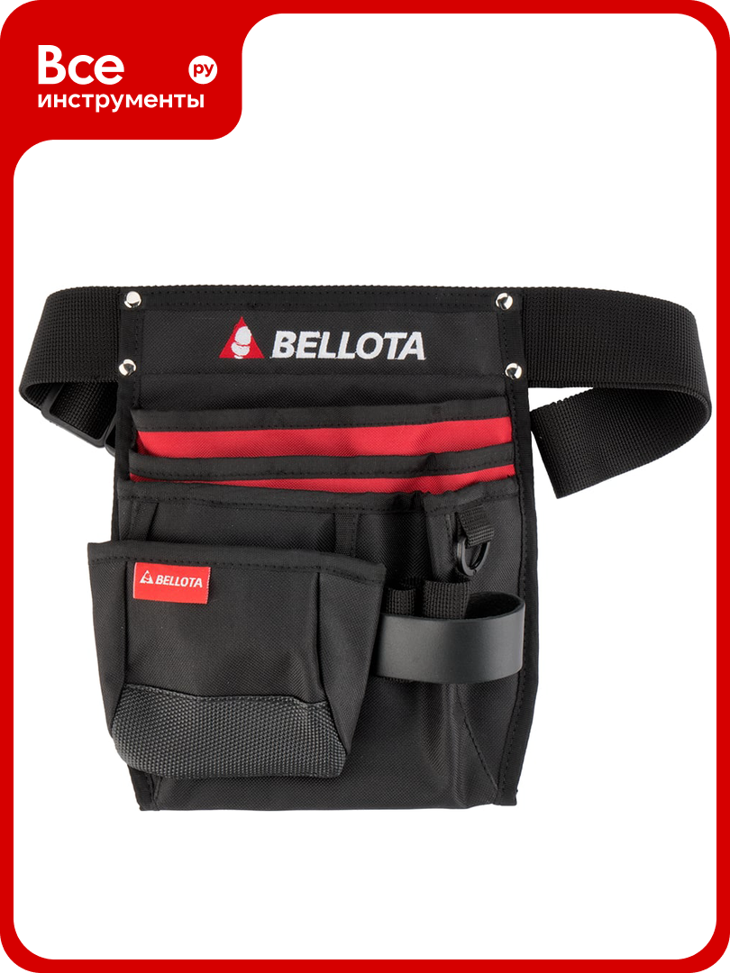 **Сумка поясная Bellota ** оснащена четырьмя карманами. Поможет держать необходимые инструменты и метизы под рукой. Используется при выполнении строительных, монтажных и отделочных работ, проводимых на высоте.