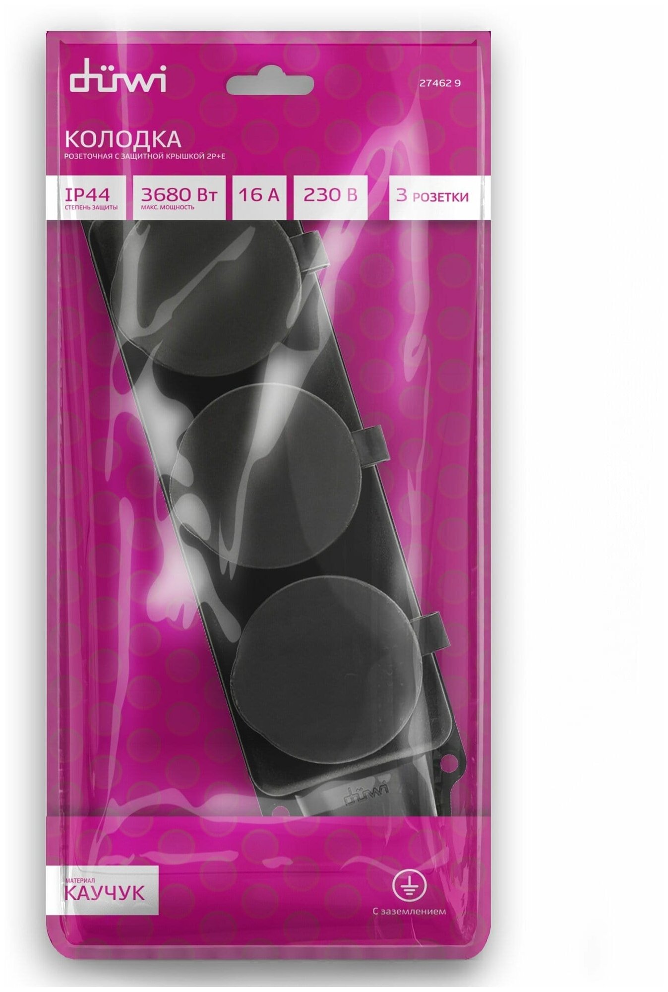 Колодка для удлинителя Duwi 1 розетка с заземлением 3680 Вт цвет красный Каучук