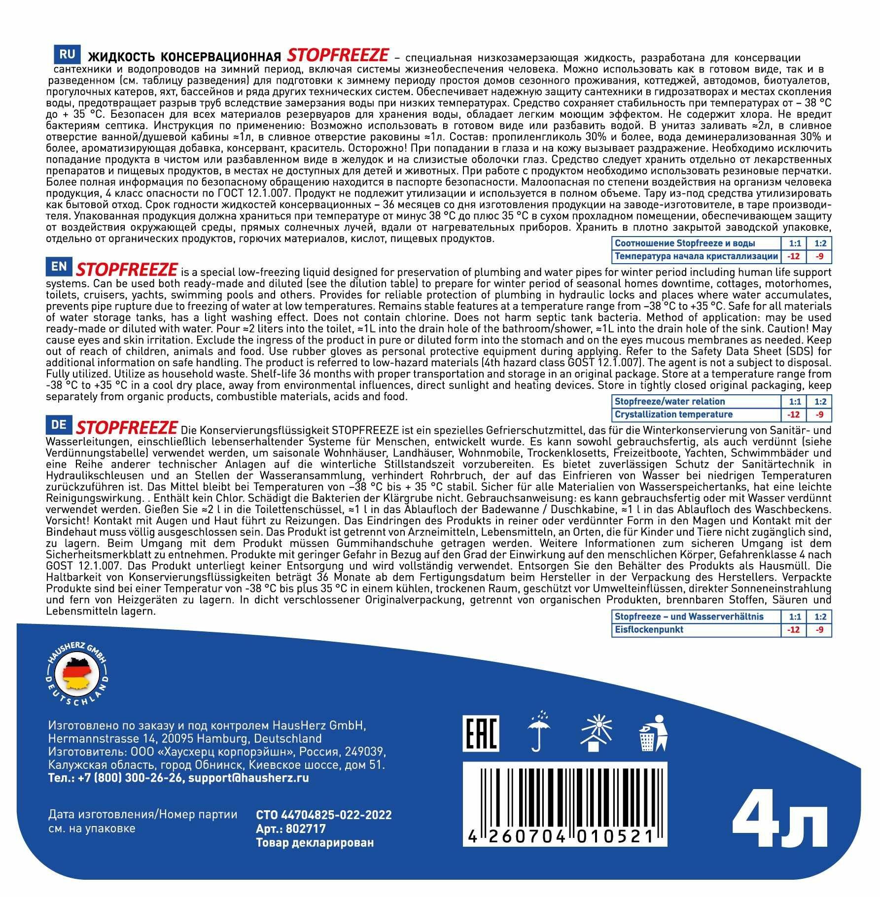Консервант для сантехники Stopfreeze 4 л Без бренда
