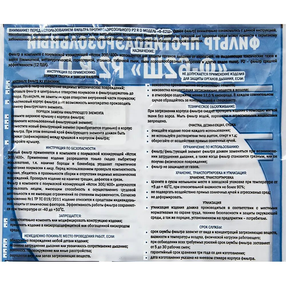 | Модель продукта | ФИЛЬТР Р2(Ф-62Ш) |
