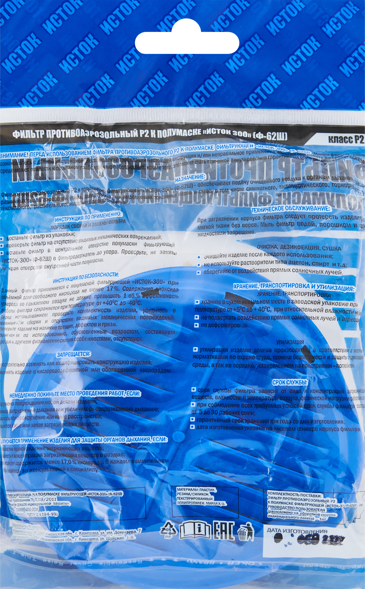 - предназначен для респиратора Исток-300 Ф-62Ш;
