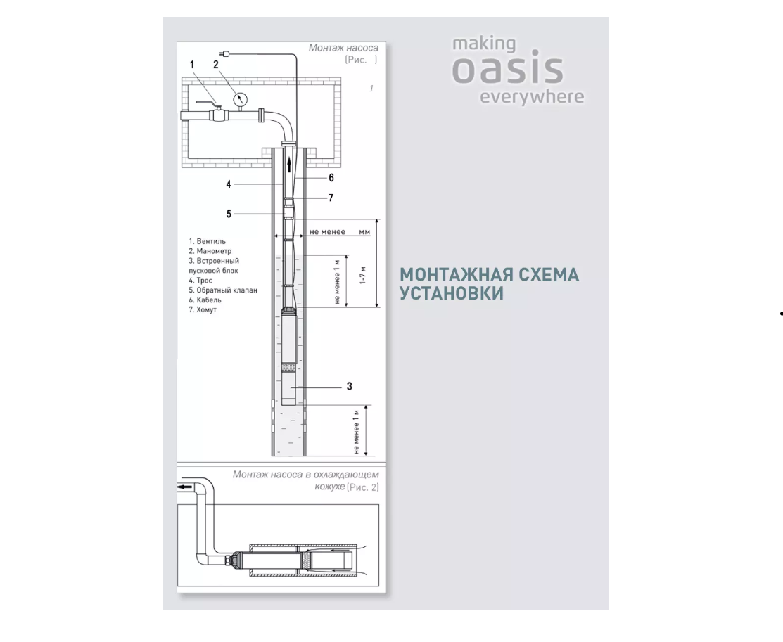 | Тип погружного насоса | скважинный |