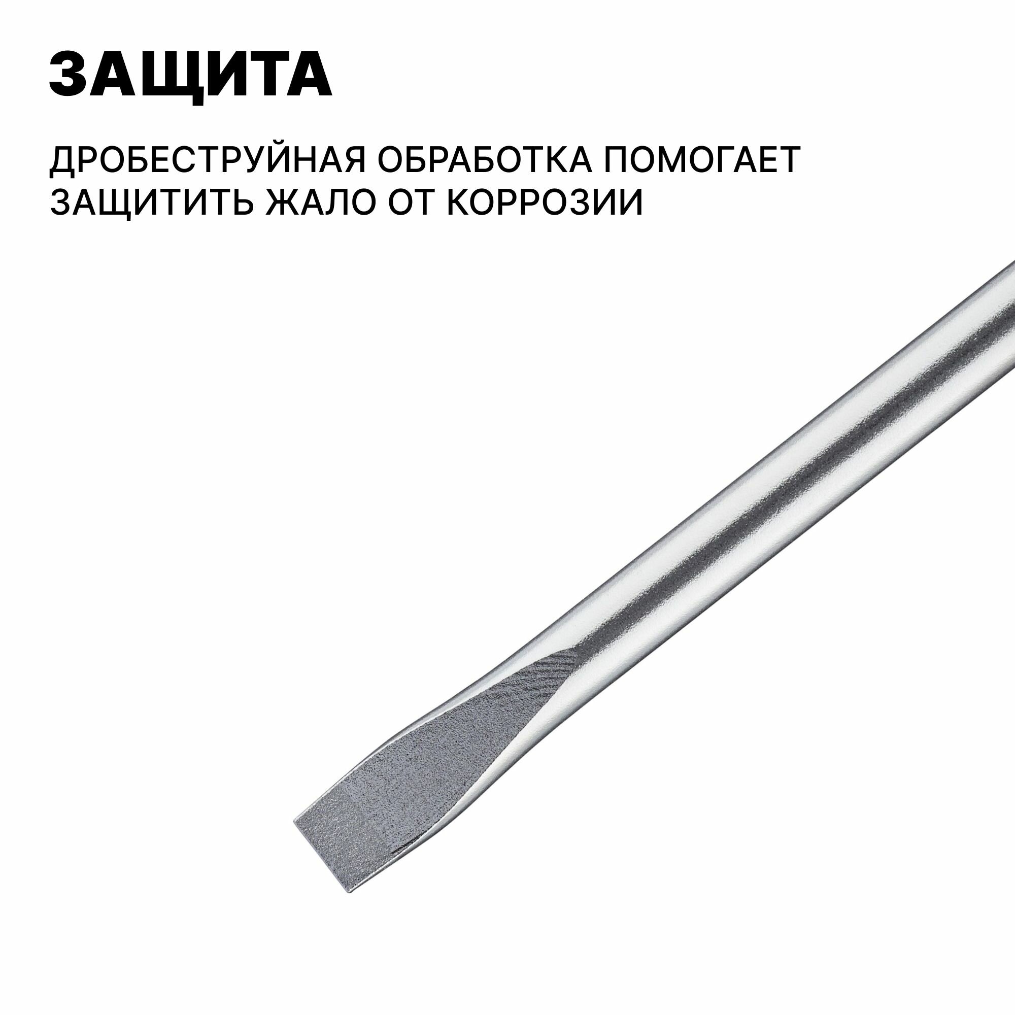 **Отвертка Stanley Fatmax ** обладает размером шлица SL5.5. Полотно сделано из хромованадиевого сплава, отличающегося прочностью и устойчивостью к нагрузкам. Ручка прямой формы изготовлена из двухкомпонентного пластика. Резиновые вставки на корпусе исключают скольжение и обеспечивают комфортную эксплуатацию, надежный хват.