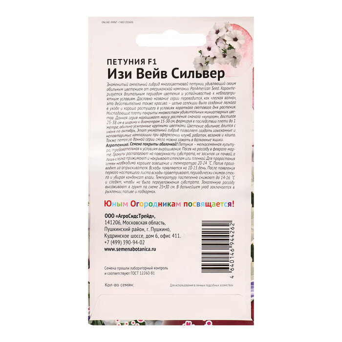 Сервис сравнения цен СкидкаГИД предлагает сравнить цены на товар «Семена цветов Детская грядка петуния Изи Вейв Сильвер F1 5 шт.»