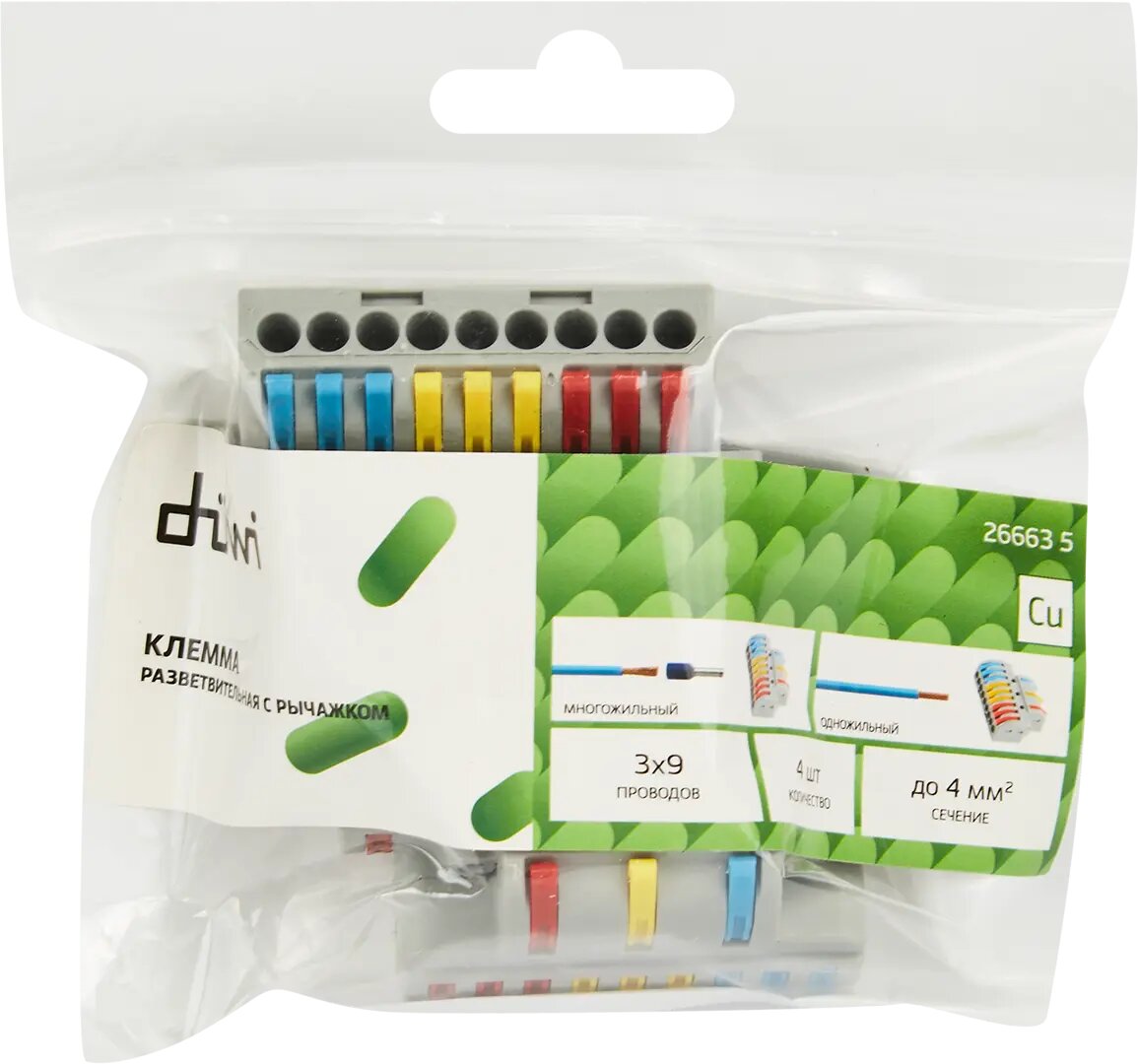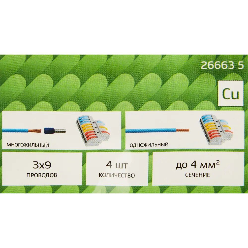 На сегодняшний день товар «Клемма соединительная 3/9-проводная 2.5 мм 4 шт. Без бренда 26663 5» можно купить с кешбеком в 1 магазине: Яндекс.Маркет