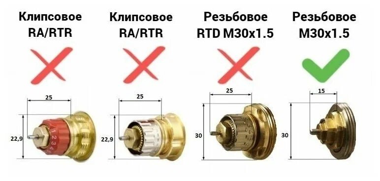 | Присоединительный размер термостатической головки | M30x1,5 |