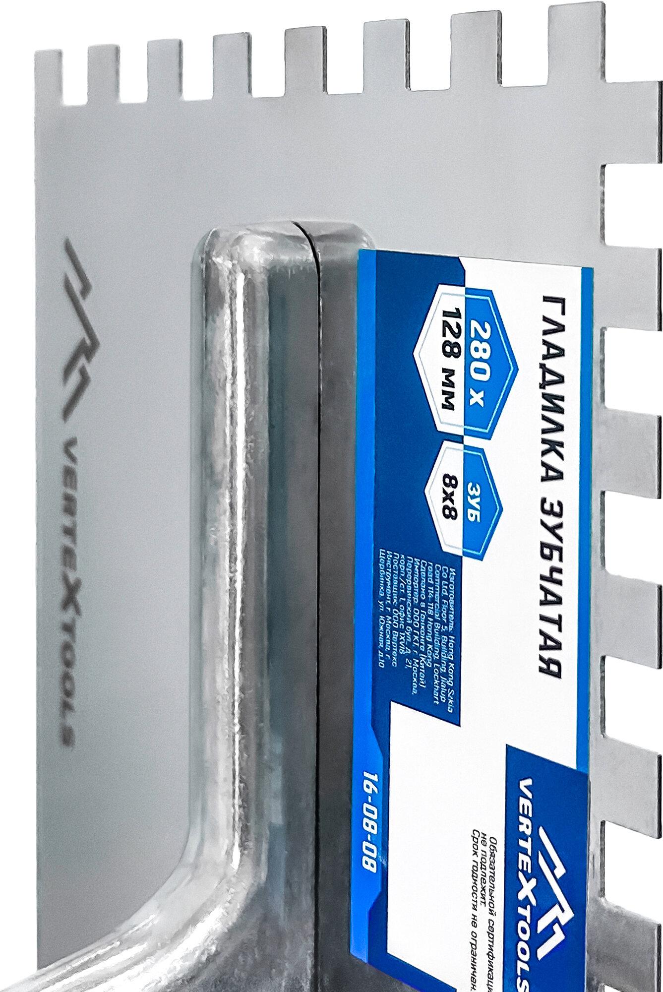 Гладилка зубчатая Vertextools 280x128 мм 8x8 мм 16-08-08