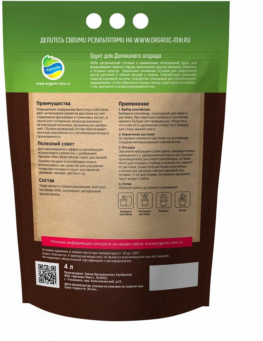 Грунт ОрганикМикс для домашнего огорода 4 л Без бренда