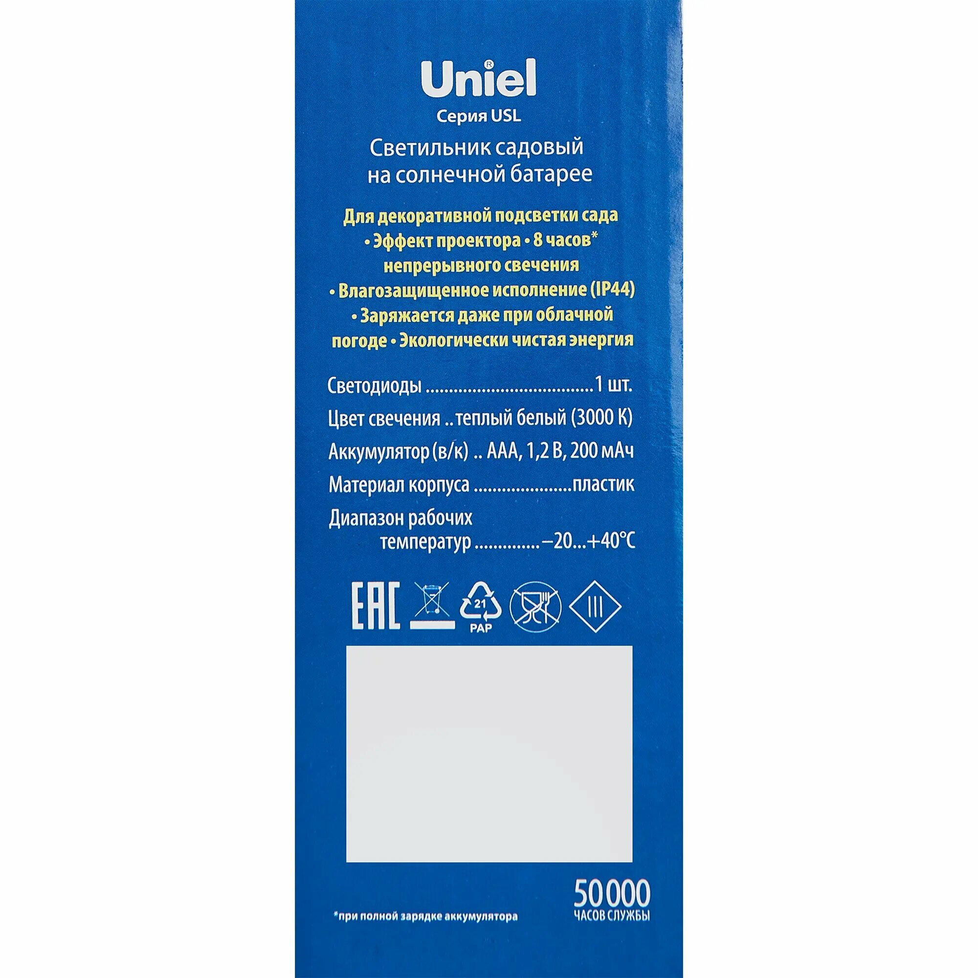 **Светильник Uniel «Arcana» USL-S-819/PT450** работает на солнечных батареях, выполнен в лаконичном дизайне, органично впишется в современные ландшафты и устанавливается в грунт. Модель изготовлена из качественных материалов, устанавливается без применения специального оборудования. При необходимости светильник можно переносить на новое место.