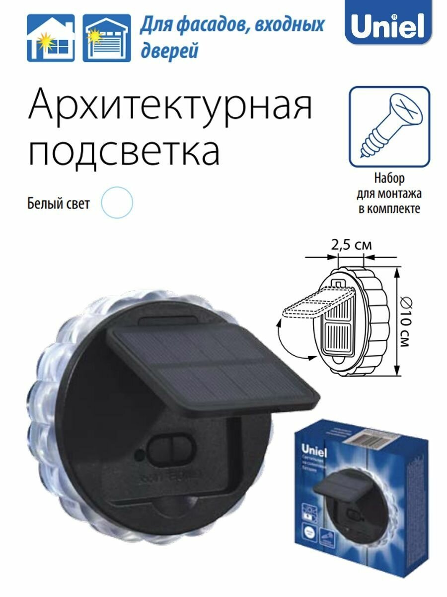 | Коллекция для публикации | USL-F-157/PT060 RADIATE Cветильник настенный на солнечной батарее. 6 светодиодов. Белый свет. 1*АА Ni-Mh аккумулятор в/к. IP44. TM Uniel |