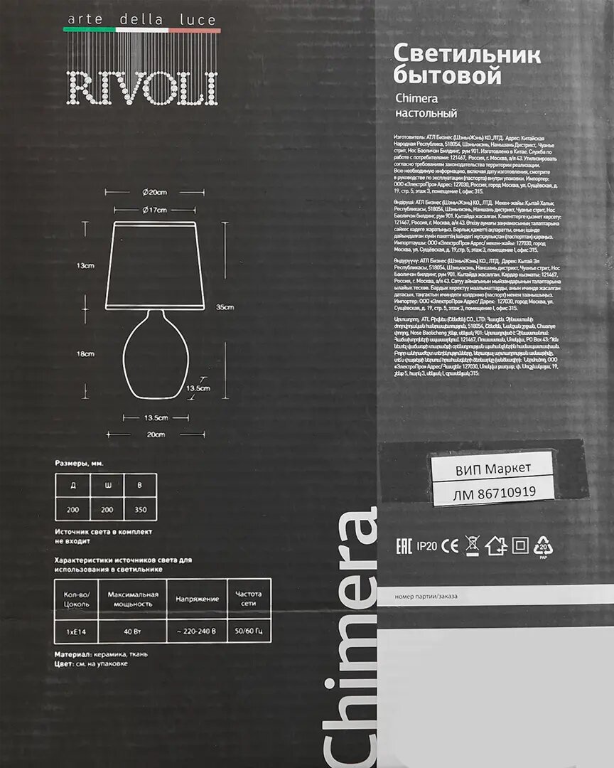 На сегодняшний день товар «Настольная лампа Rivoli Chimera цвет белое дерево 7072-502» можно купить с кешбеком в 1 магазине: Яндекс.Маркет