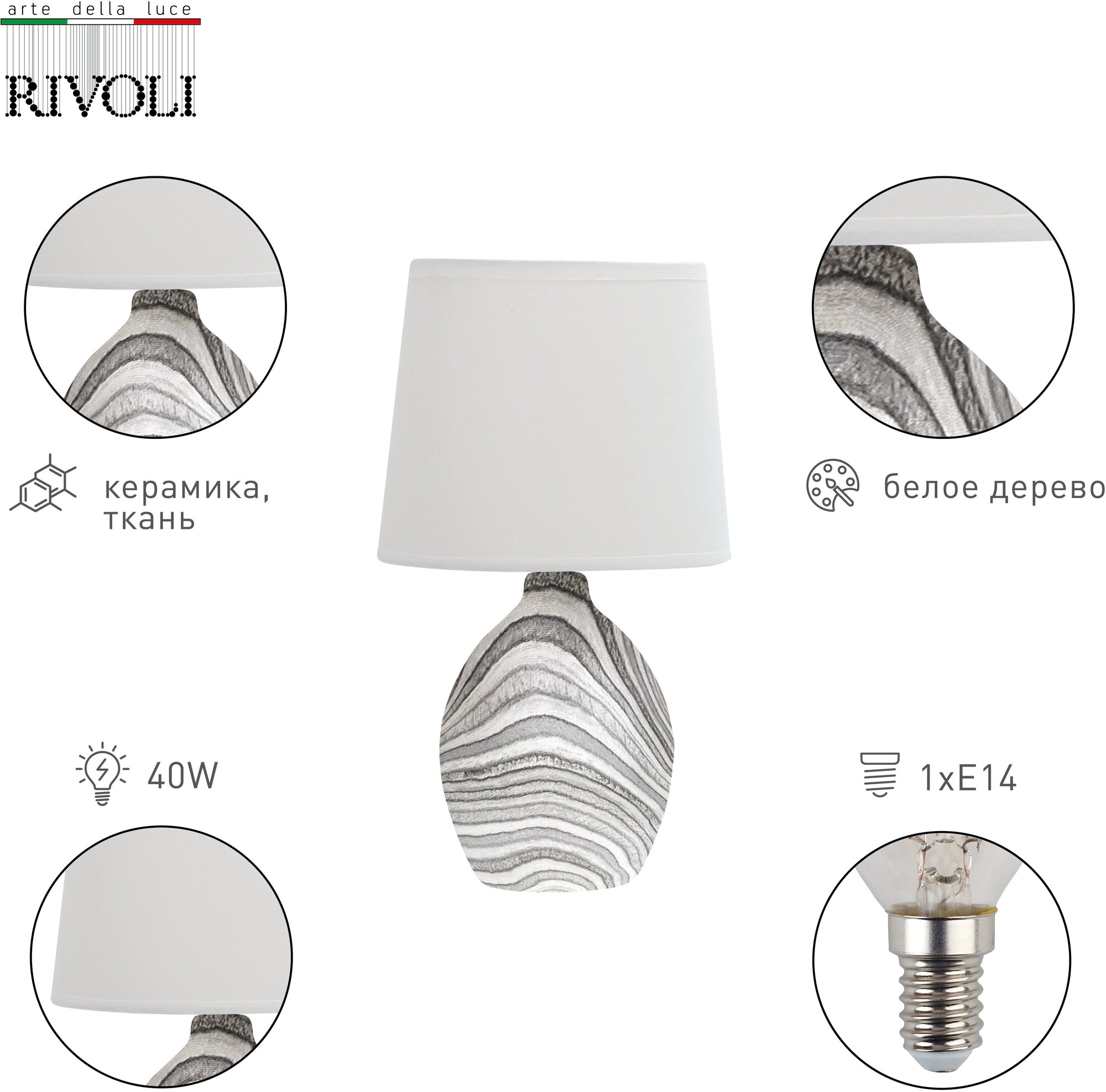Настольная лампа Rivoli Chimera цвет белое дерево 7072-502