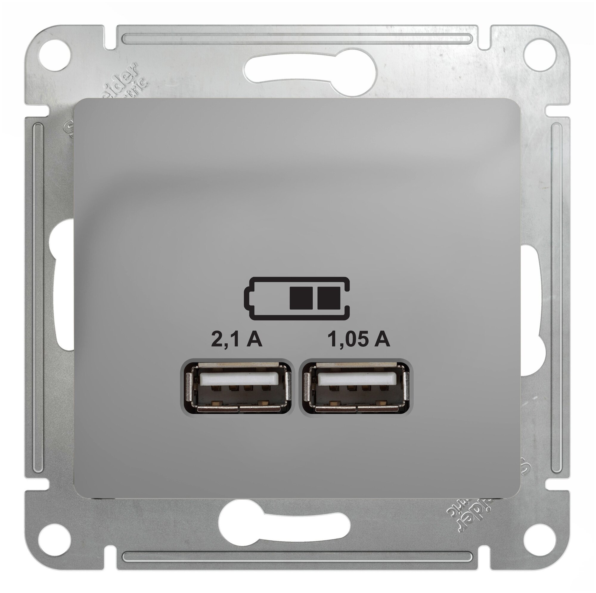 Розетка USB встраиваемый Schneider Electric Glossa цвет алюминий Розетка USB A+A